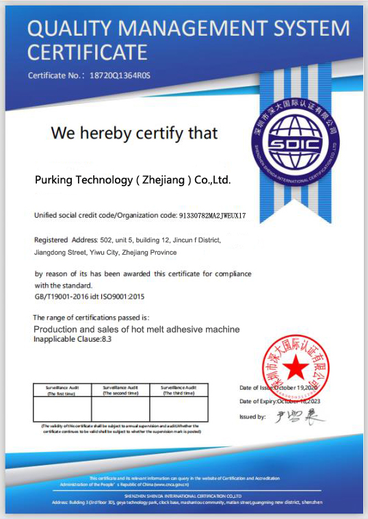 Purking Technology (Zhejiang) Co., Ltd.twaqqfet fl-2014, Hija kumpanija tal-adeżivemachine professjonali mdewba bis-sħana li tintegra r-riċerka, l-iżvilupp, il-kummerċjalizzazzjoni, it-taħriġ tal-persunal u s-servizz ta 'wara l-bejgħ, Il-kumpanija għandha aktar minn 1000 metru kwadru ta' bini ta 'fabbrika. Il-kwartieri ġenerali tal-bejgħ tal-kumpanija jinsabu fil-Belt ta 'Yiwu, Provinċja ta' Zhejiang. Iċ-ċentru tal-produzzjoni u l-assemblaġġ jinsab fil-Belt Dongguan, Provinċja ta 'Guangdong. |